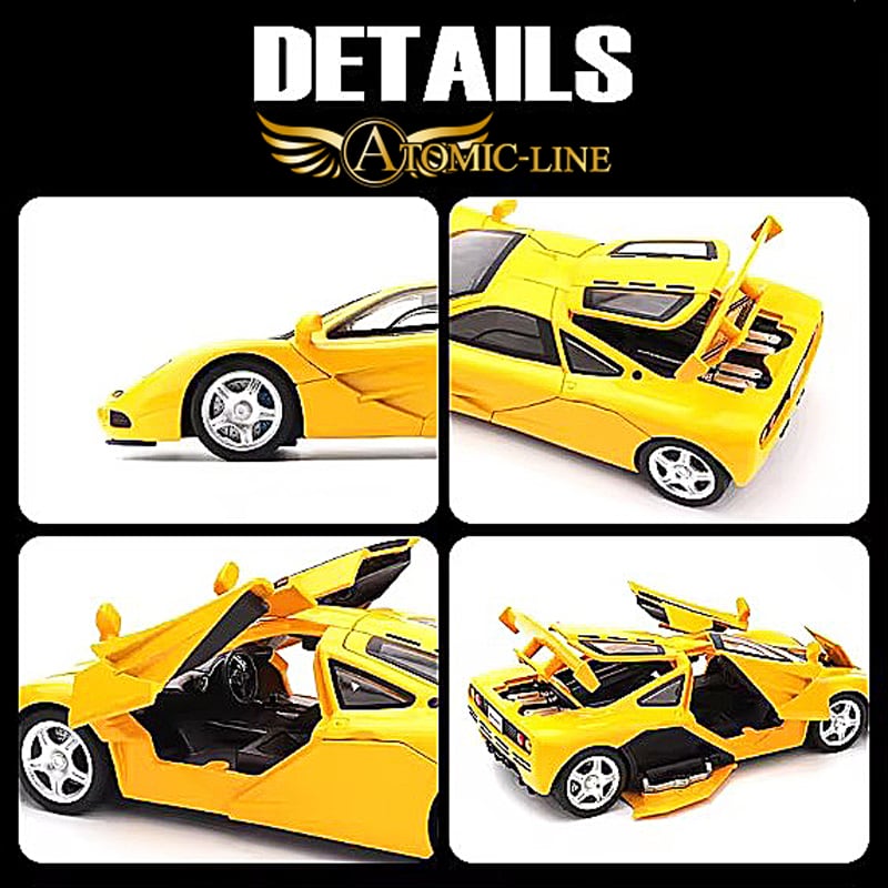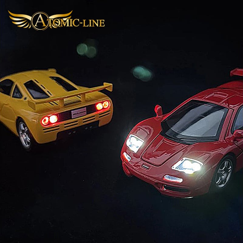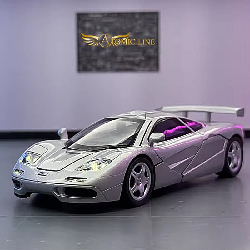 マクラーレン エフワン 1/24 スケールのミニカーは、高品質な合金モデルで、魅力的なライト点灯機能とエンジンサウンドを搭載しております。全4色の多彩なラインアップがあり、自宅のインテリアやコレクションに華やかさを加え、楽しんでいただけるアイテムです。