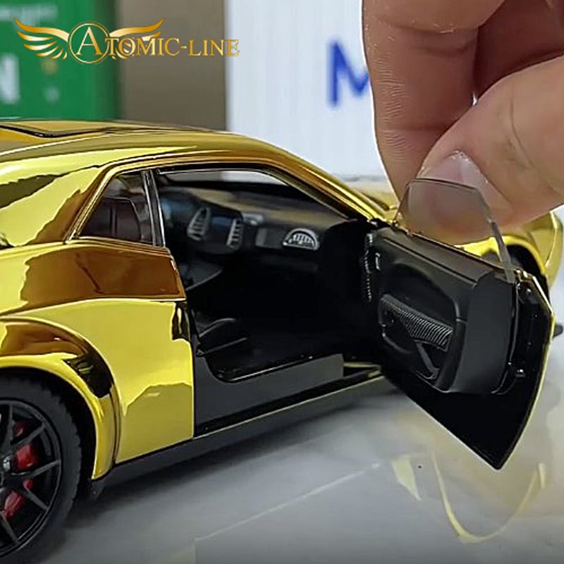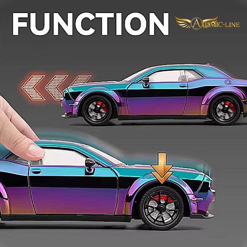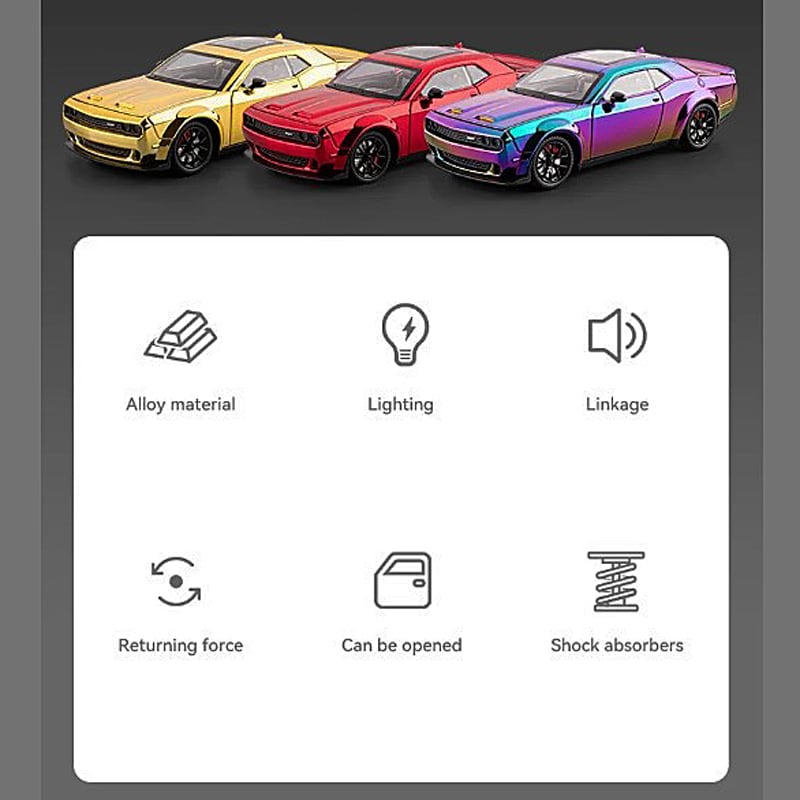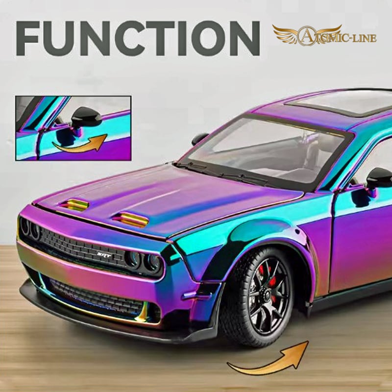 ダッジ チャレンジャー SRT ヘルキャット レッドアイ 1/24 スケールのミニカーは、高品質な重厚感ある合金モデルで、迫力あるライト点灯機能とエンジンサウンドを搭載しております。メタリックな全3色から選べるバリエーションで、自宅のインテリアやコレクションにエレガントなアクセントを加え、楽しんでいただけるアイテムです。