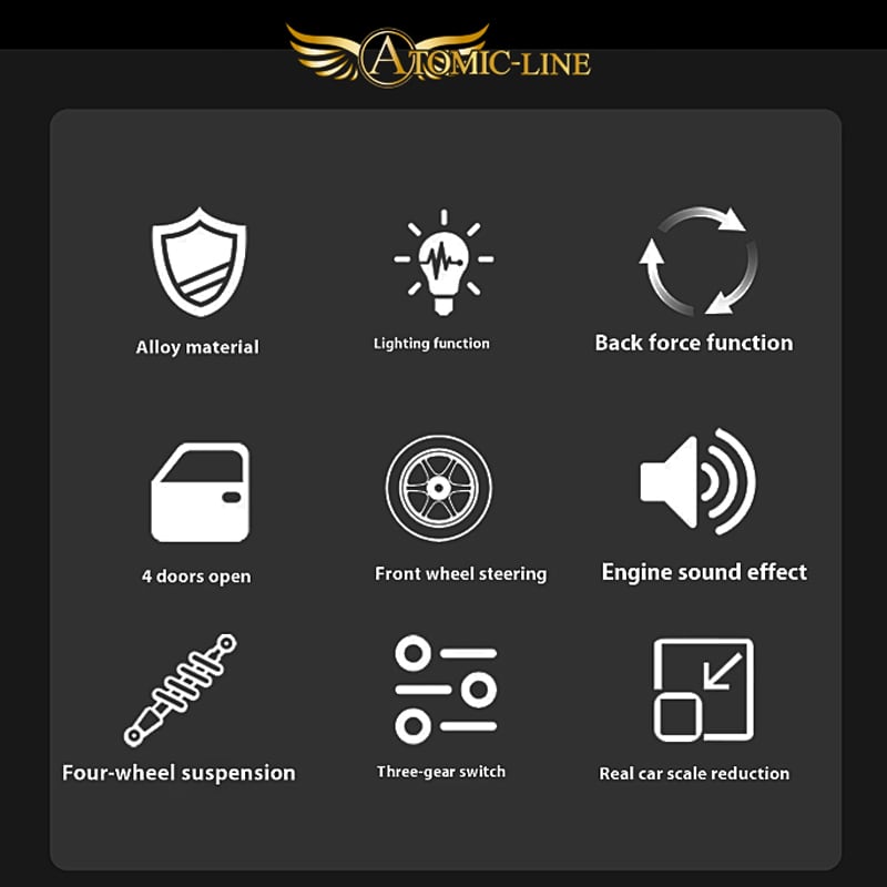 ●ミニカーを机や床に置いて車体上部から押すと、エンジンサウンドと共にヘッドライト、テールランプが点灯します。