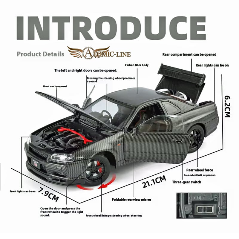 現在も人気が止まない、日産 GT-R R34 ミニカー 1:24 モデルは、精巧な設計と高品質な合金素材で仕上げられており、コレクターやギフトに最適な素晴らしいアイテムとなるでしょう。