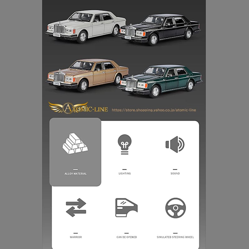 お部屋やデスクに飾ることで、その存在感は抜群で、まるで本物のような美しさが周囲を魅了します。自分へのご褒美や、大切な人への贈り物としてもぴったりです。この機会に、1994 RollsRoyce Silver Spur の特別な魅力をぜひ体感してください!