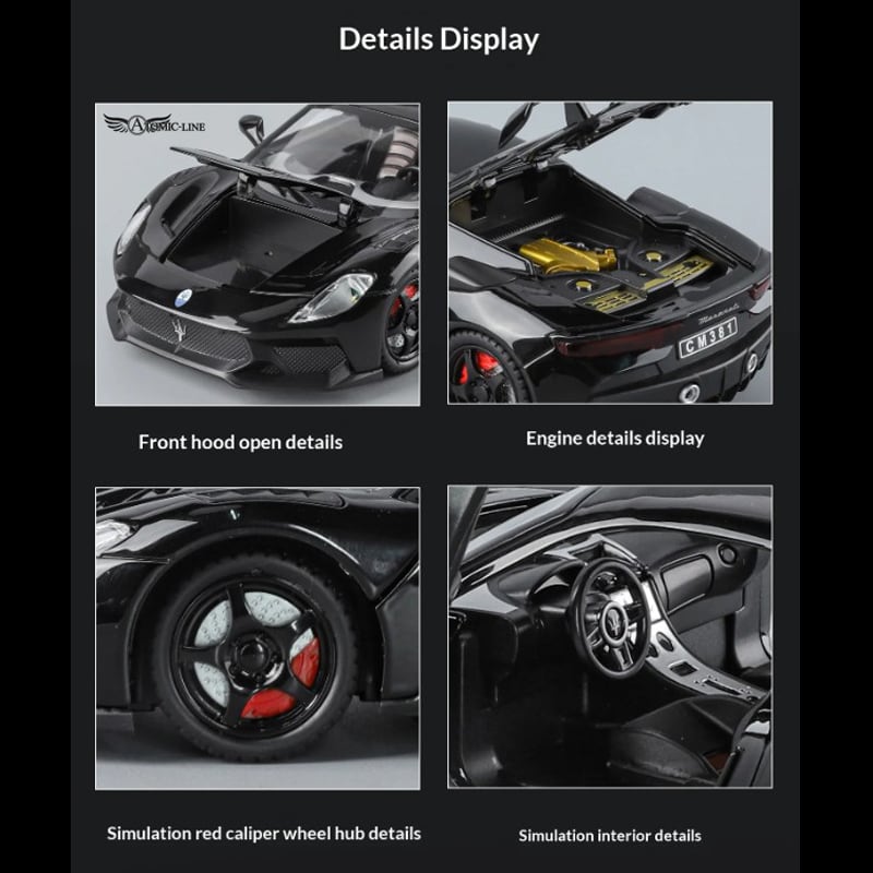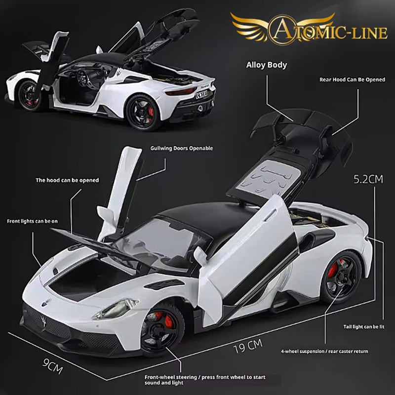 Maserati MC20 GT2 Stradale 1:24 ミニカーは、豪華な合金素材で仕上げられ、全3色展開しております。自動車ファンやマセラティ愛好者への贈り物としても非常に魅力的で、インテリアのスタイリッシュなアクセントにも最適です!
