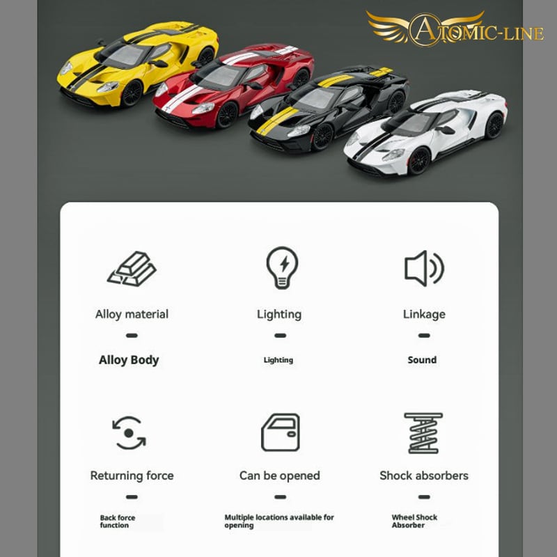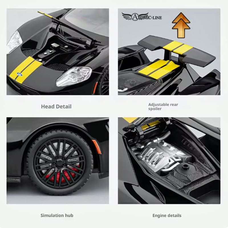 FORD GT EcoBoost 1:24 ミニカーは、魅力的な合金素材で作られた全4色展開のモデルです!自動車ファンやフォード愛好者への特別な贈り物にぴったりで、インテリアのスタイリッシュなアクセントにも最適です。