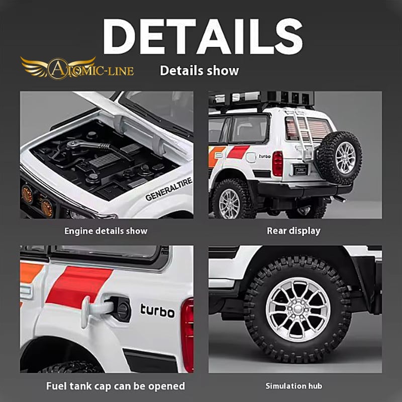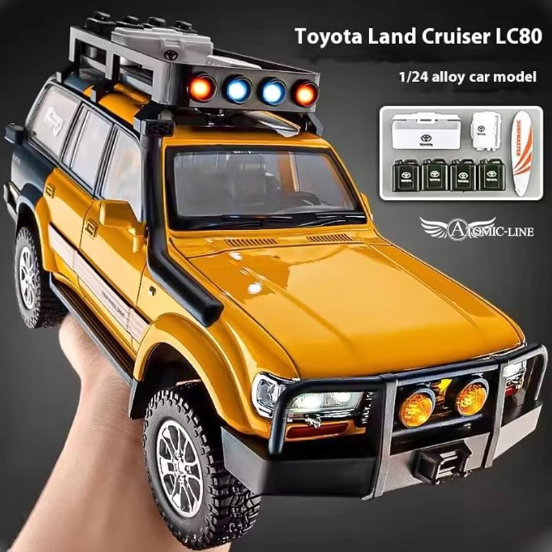 TOYOTA LAND CRUISER 80 1:24 ミニカーは、魅力的な合金素材で作られた全3色展開のモデルです!旧自動車愛好者やトヨタファンへの特別な贈り物にぴったりです。インテリアのスタイリッシュなアクセントとしても最適です。