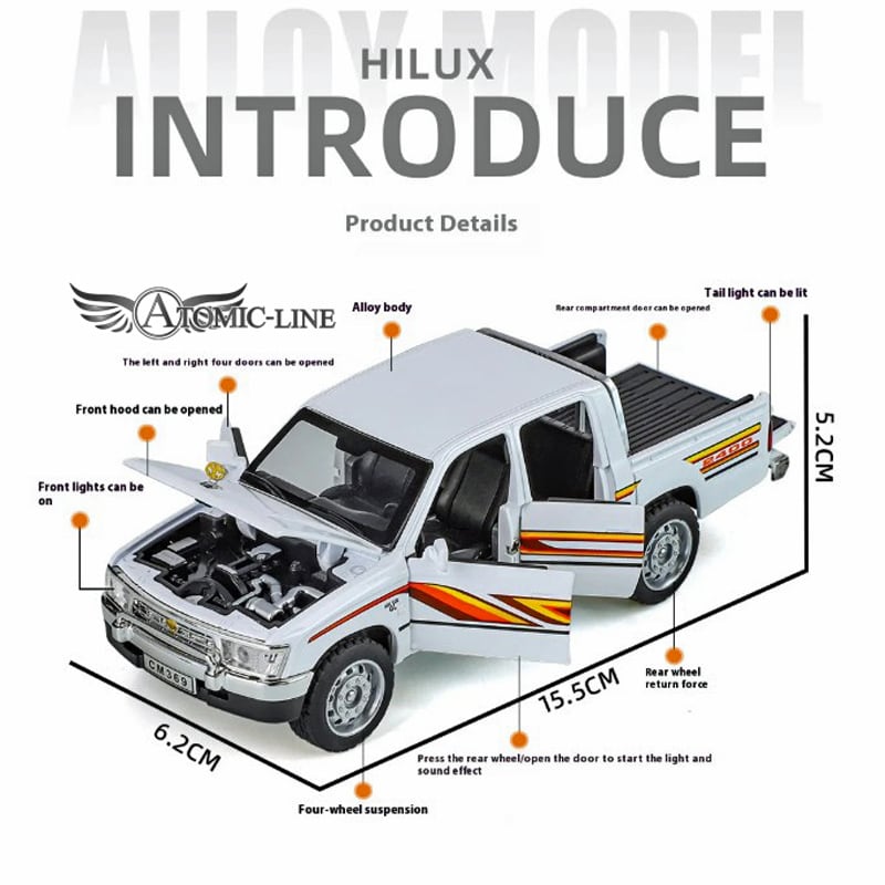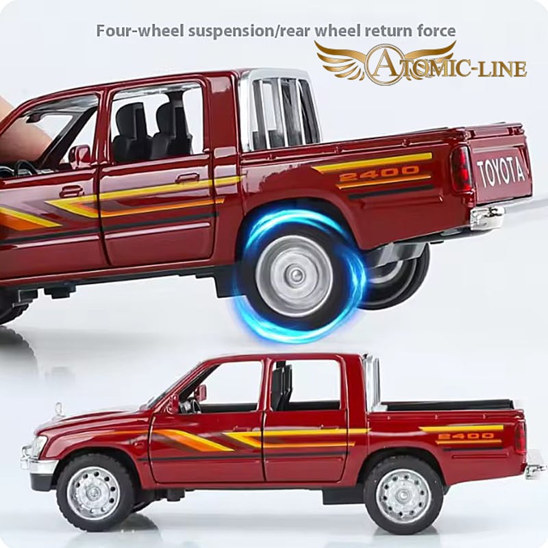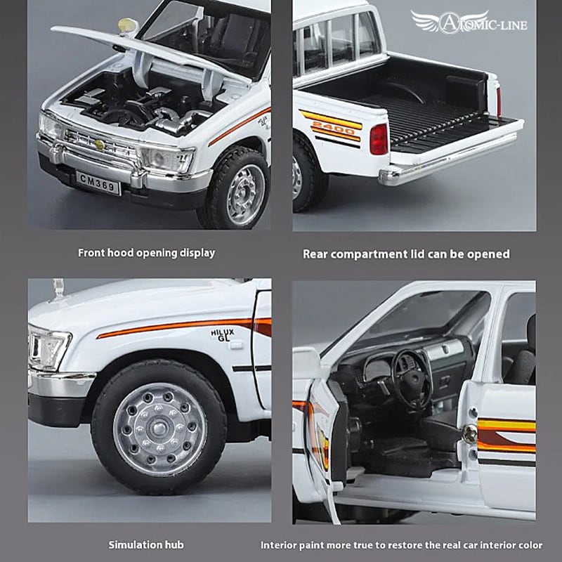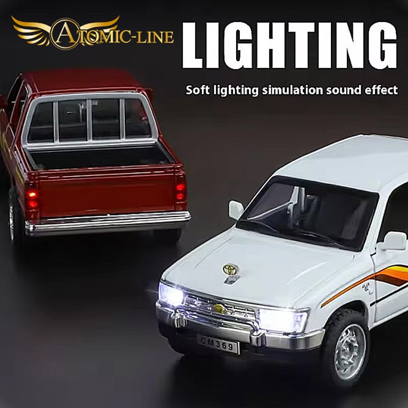 TOYOTA HILUX SURF 1:32 ミニカーは、旧自動車ファンやトヨタ愛好者への特別な贈り物にぴったりで、インテリアのスタイリッシュなアクセントにも最適です!魅力的な合金素材を使用した全3色展開のモデルです。
