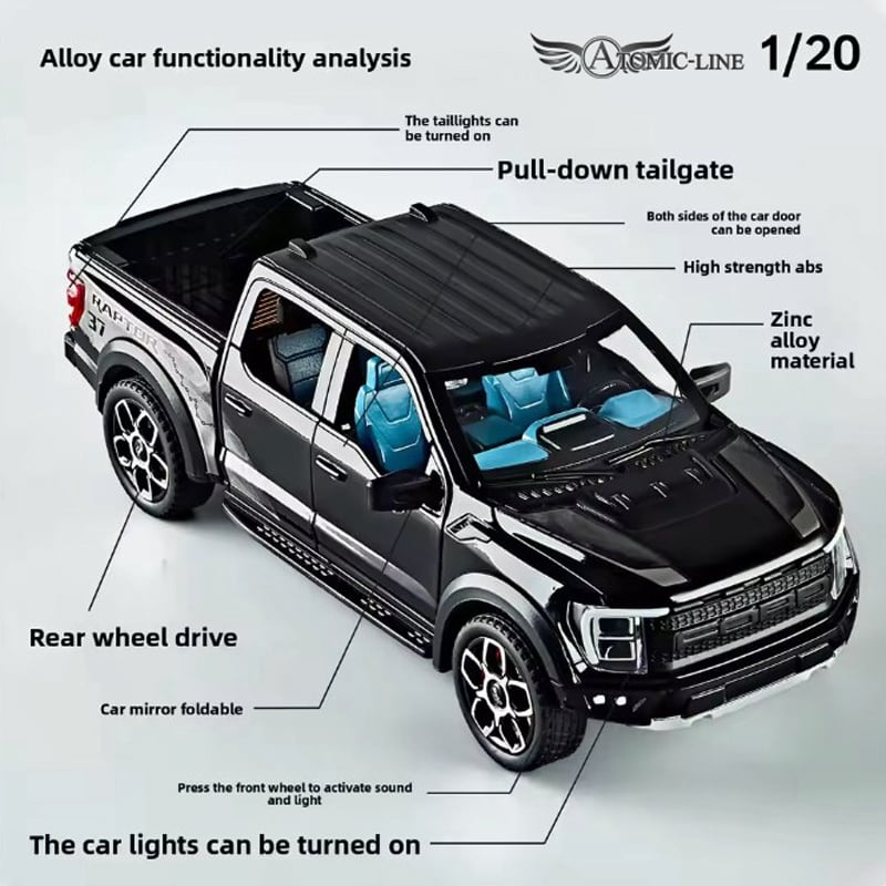 Ford F150 Raptor 1:20 ミニカーは、魅力的な合金素材で作られた全6色展開のモデルです!自動車ファンやフォード愛好者への特別な贈り物に最適で、インテリアのスタイリッシュなアクセントとしてもお楽しみいただけます。