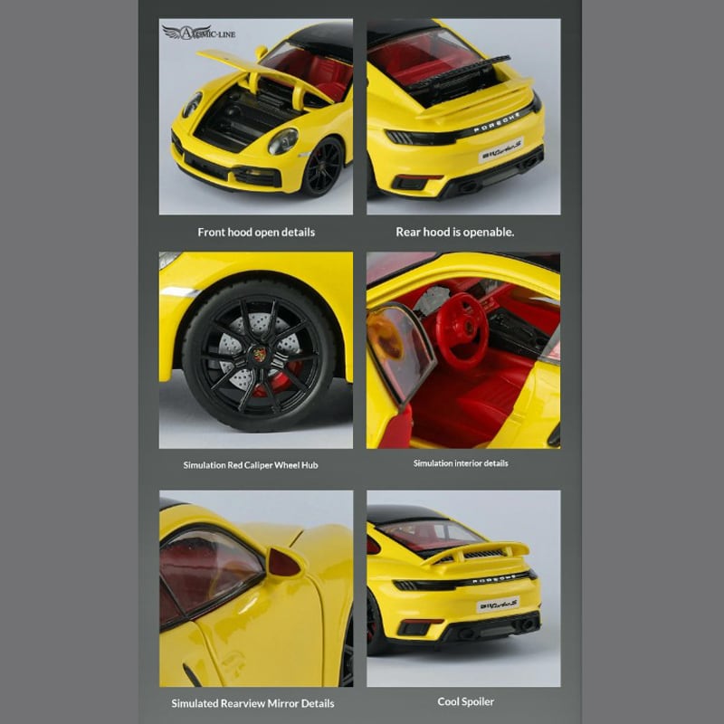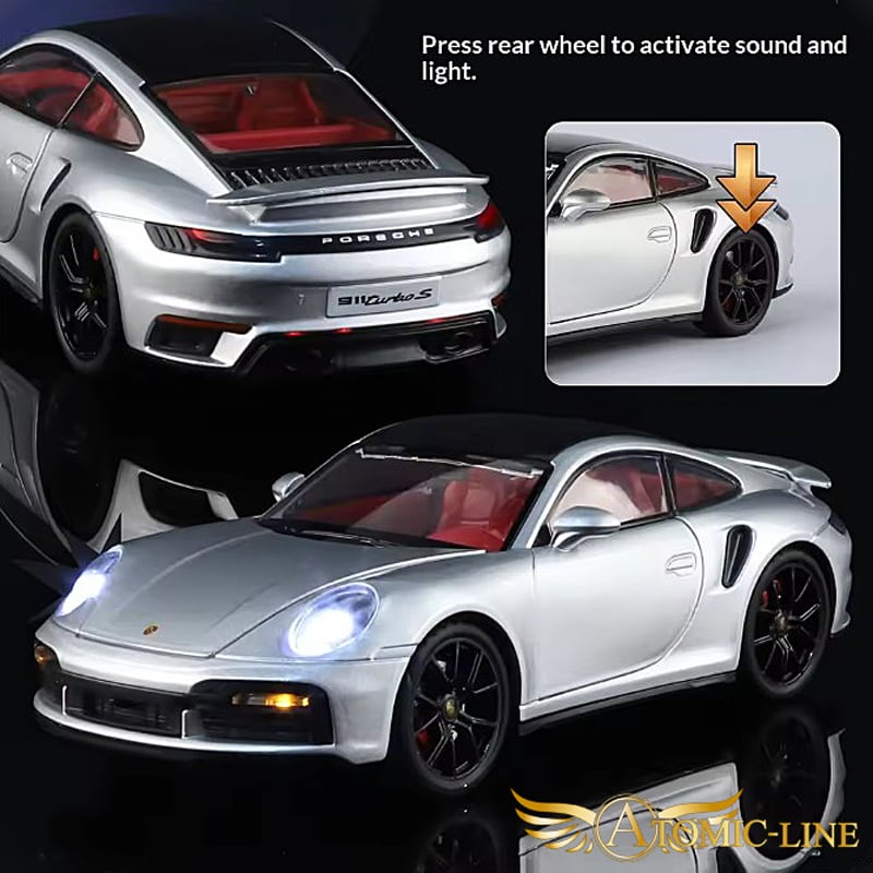 PORSCHE 911 turboS 1:24 ミニカーは、魅力的な合金素材で作られた全3色展開のモデルです!ポルシェファンや自動車愛好者への特別な贈り物に最適で、インテリアのスタイリッシュなアクセントとしてもお楽しみいただけます。