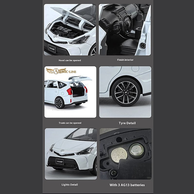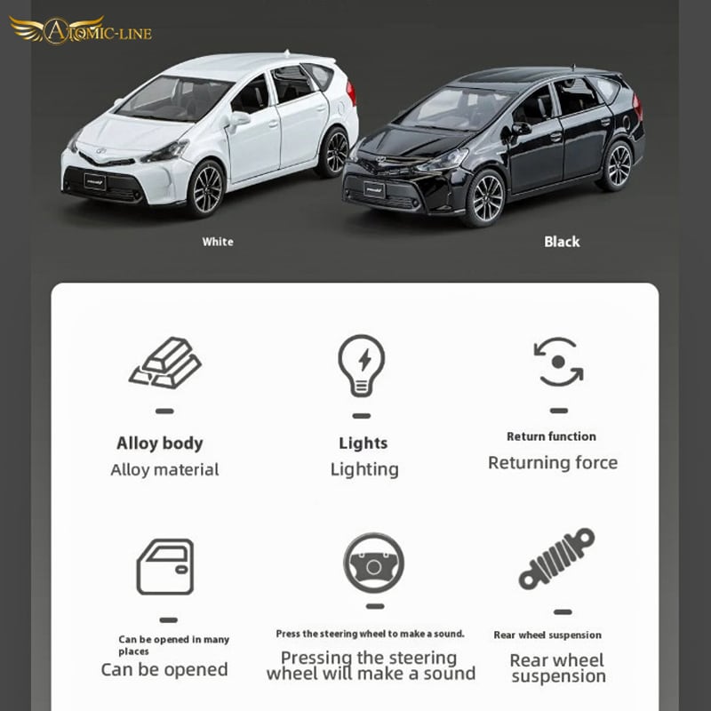 TOYOTA PRIUS ALPHA 1:28 ミニカーは、魅力的な合金素材で作られた全3色展開のモデルです!トヨタファンや自動車愛好者への特別な贈り物に最適で、インテリアのスタイリッシュなアクセントとしてもお楽しみいただけます。