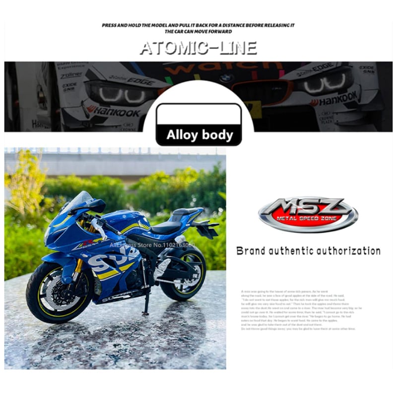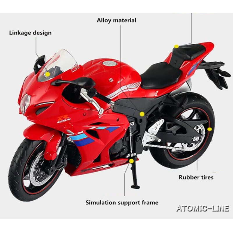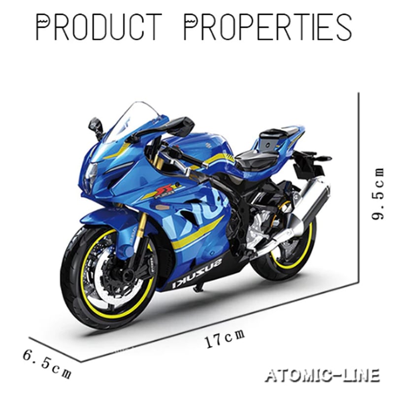 1/12スケールのスズキGSX-R1000ミニカーは、ダイキャストモデルで、全4色展開です。細部までこだわったリアルな造りは、バイクのファンにとってはたまらない逸品です。飾るだけでなく、車やバイクの模型コレクションを楽しむ方にもおすすめです。
