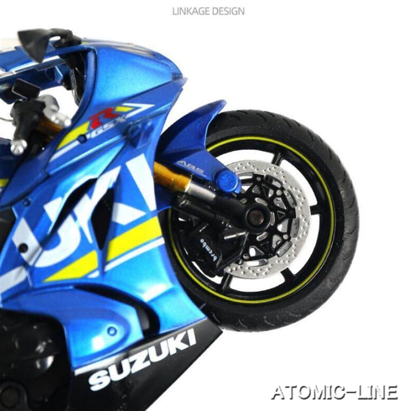 このミニカーは、スズキGSX-R1000の魅力を余すことなく再現しています。エンジン部分やフレームのディテールは細かく造られ、まるで本物のよう。拘りの詰まったデザインは、モータースポーツ愛好家の心を掴むこと間違いなしです。