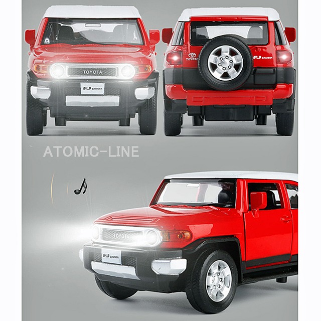 トヨタ FJ クルーザー 1/32 ミニカーは、リアルなディテールとライト点灯が魅力の合金モデルです。2色展開で、選び抜かれたカラーリングが存在感を引き立てます。このミニカーは、模型やジオラマ作りにも最適です。