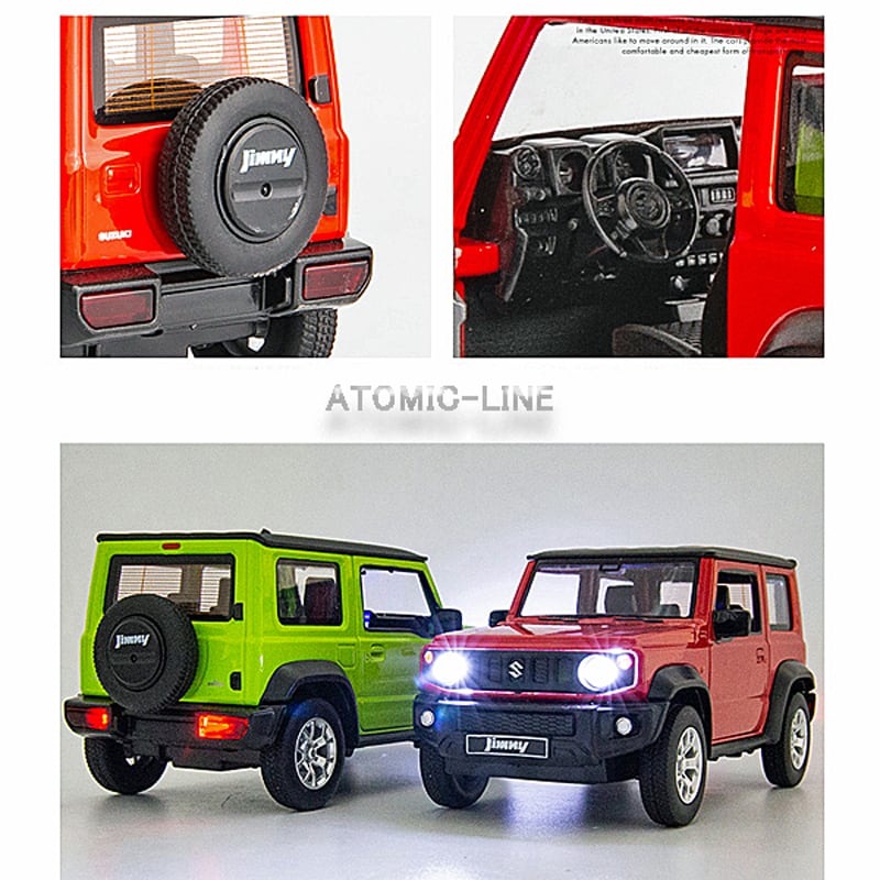 このミニカーは全2色展開。本物のジムニーのカラーバリエーションを再現し、どちらも魅力的な存在感があります。また、光るライトやエンジンサウンドの再現など、細部にまでこだわった仕上がりです。