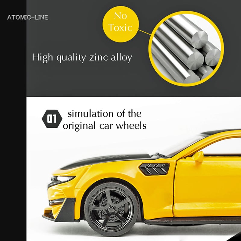 シボレー CAMARO カマロ1/32スケールのミニカーです。5色展開で、車体のディテールはもちろん、ライトの点灯やエンジンサウンドの再現も可能です。合金素材を使用しており、重厚感のある質感も見逃せません。