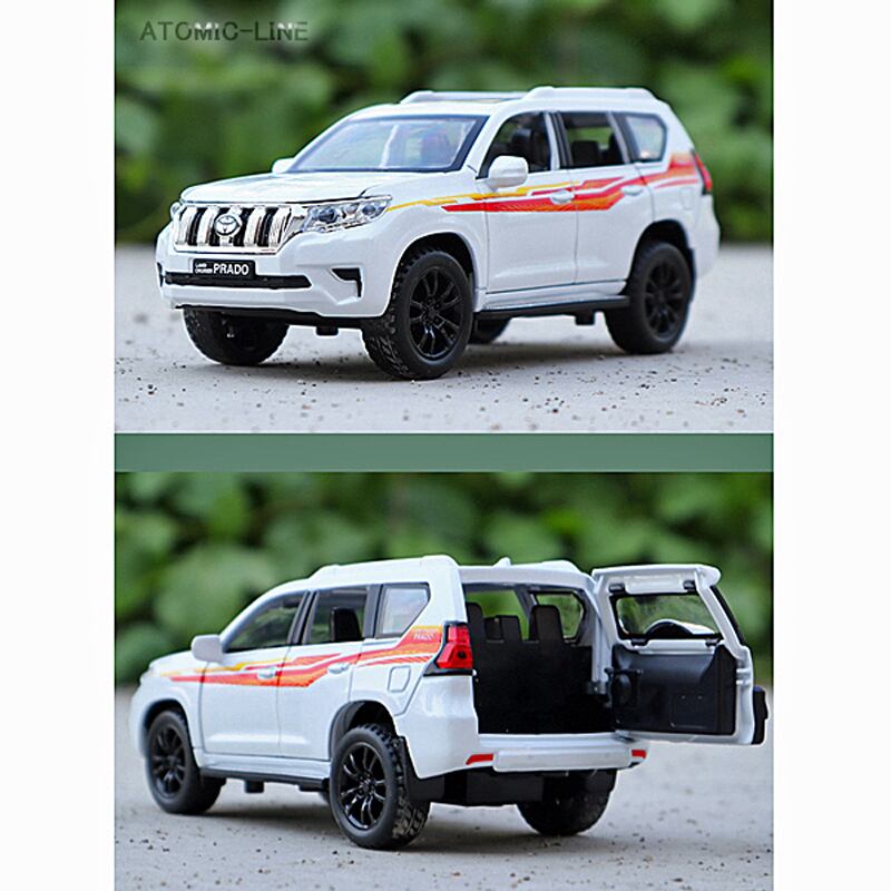 豪華なディテールとリアルなサウンドが魅力のTOYOTA ランドクルーザー プラドの1/32スケールミニカーが登場しました!全2色のカラーバリエーションで、お好きなデザインをお選びいただけます。迫力あるエンジンサウンドと共にヘッドライトが点灯し、本物のランドクルーザーを楽しむかのような臨場感が味わえます。
