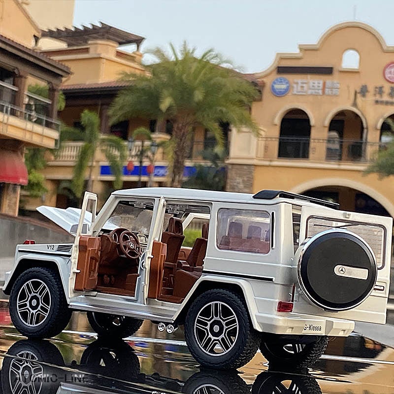 1/24スケールのメルセデス ベンツ G63 AMGのミニカーです。エンジンサウンドやライト点灯が楽しめる合金モデルです。精巧な造りと細部にまでこだわったディテールが特徴で、まるで本物の車が手の中にあるような感覚を味わえます。
