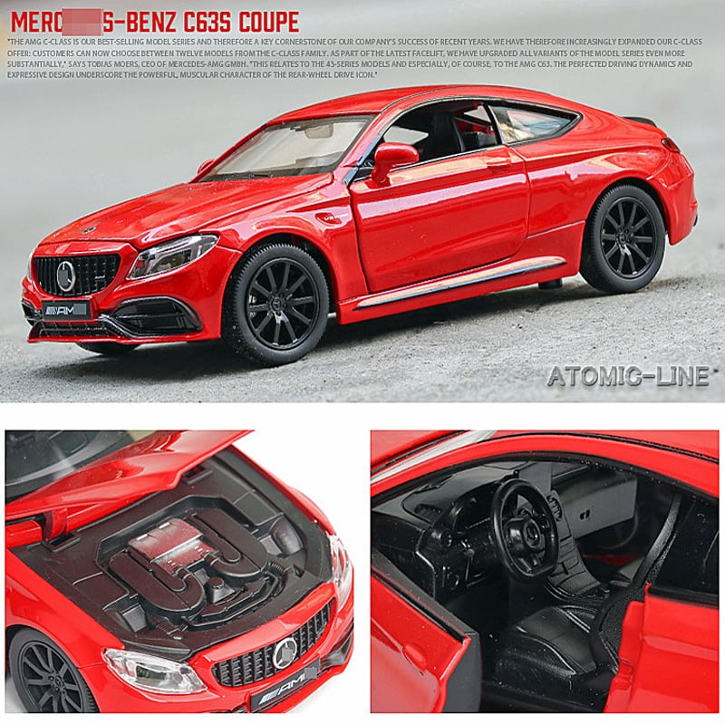 このミニカーは、クラシカルで洗練されたデザインが特徴です。メルセデス ベンツの最新モデル、C63S クーペ AMGを精巧に再現し、車好きであれば必見の一品です。ボディの美しい曲線やシャープなフロントグリルなど、細部まで忠実に再現されています。ミニチュアながらも、その存在感は圧倒的です。
