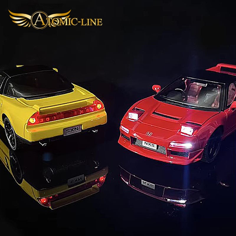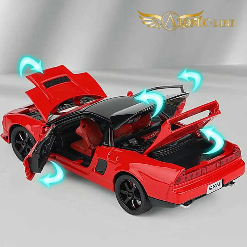 HONDA NSX をモチーフした1/32スケールのミニカーは、高品質な合金モデルで全4色展開です。ライト点灯機能とリアルなエンジンサウンドを搭載し、実車さながらの迫力ある体験をお楽しみいただけます。ジオラマやコレクション用にも最適なアイテムです。